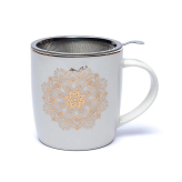 Teetasse mit Deckel und Teesieb aus Edelstahl.