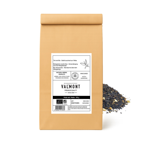 Laat u meeslepen door de betoverende charme van "Soleil couchant sur l'Atlas", een thee die doet denken aan de levendige markten en zwoele avonden van een historische Marokkaanse stad. Met de dominante tonen van oranjebloesem is deze blend een zintuiglijke ontsnapping naar exotische oorden.