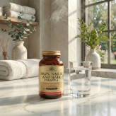 Een doffe huid, gespleten nagels en futloos of broos haar: dit zijn veelvoorkomende tekenen van een tekort aan bepaalde voedingsstoffen. De Solgar Skin, Nails & Hair formule is ontwikkeld om dit aan te pakken. Elke tablet combineert zink , vitamine C , koper en MSM (methylsulfonylmethaan), een bron van organische zwavel. Twee aminozuren maken de formule compleet: L-lysine en L-proline , die betrokken zijn bij de aanmaak van collageen en huidproteïnen.
