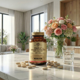 Vitamine C Ester Plus 1000 mg comprimés Solgar contient une forme de vitamine C tamponnée (Ester-C® – ascorbate de calcium) à absorption optimale et douce pour l’estomac, enrichie d’un complexe de bioflavonoïdes d’agrumes, rutine, acérola et cynorrhodon.