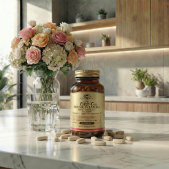 Vitamine C Ester Plus 1000 mg comprimés Solgar combine une forme tamponnée de vitamine C (Ester-C® – ascorbate de calcium) facilement assimilable et douce pour l’estomac avec un complexe de bioflavonoïdes d’agrumes, rutine, acérola et cynorrhodon.